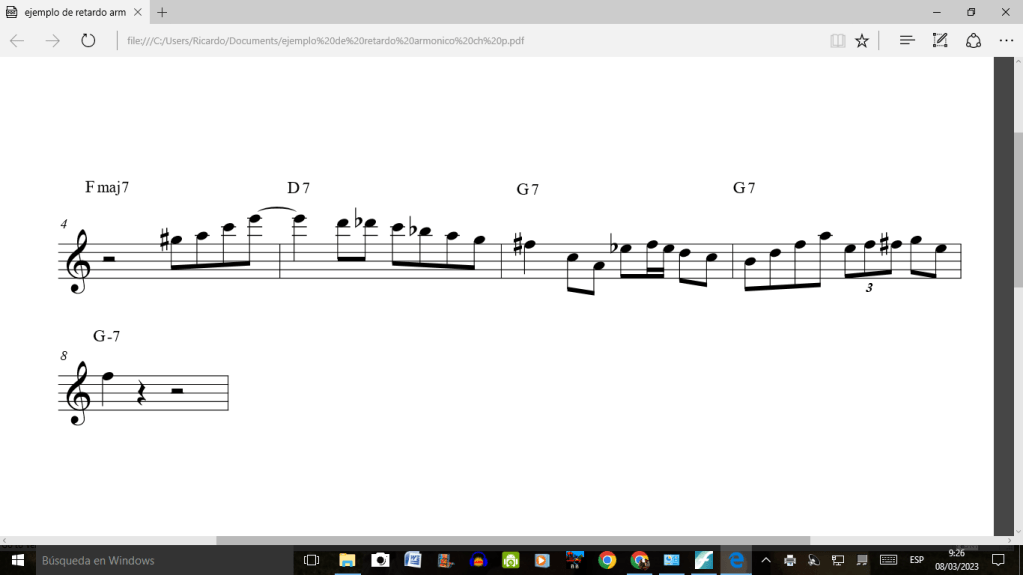 Cuando en el camino a ser mejores improvisadores nos encontramos con el recurso de anticipación armónica es muy probable que también descubramos el recurso del retardo armónico como unos de los más usados por nuestros referentes. Por alguna razón en general este último no es tan practicado y ambos en mi opinión son igualmente importantes a la hora de ganar variedad y por sobre todo…como llamarlo… elasticidad en nuestras líneas? Una mayor sensación de fluidez en nuestro discurso? O todo eso junto! Jeje